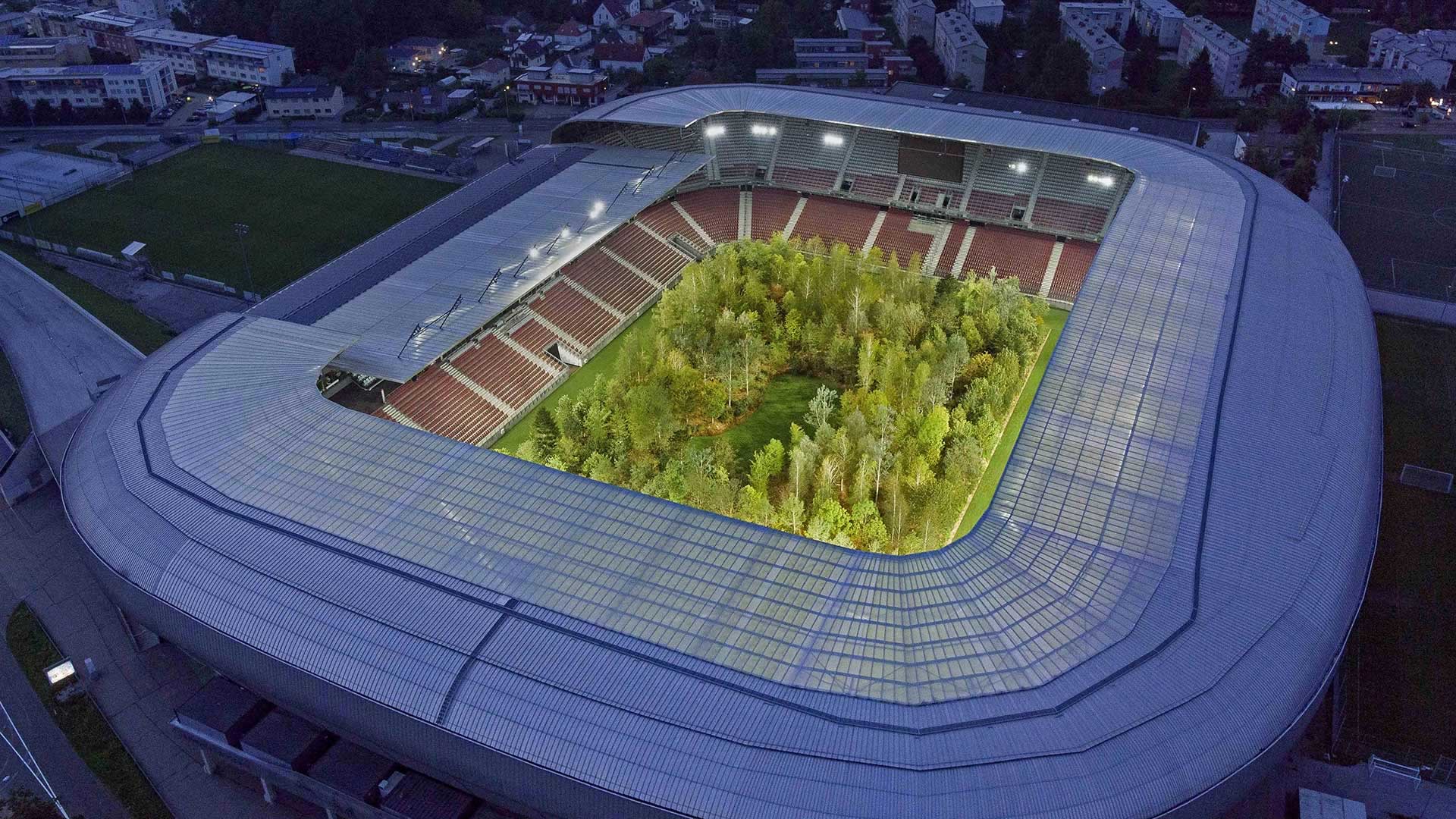Klaus Littmann's 'FOR FOREST: The Unending Attraction of Nature' in Wörthersee Stadion, Klagenfurt, Austria (© UNIMO)