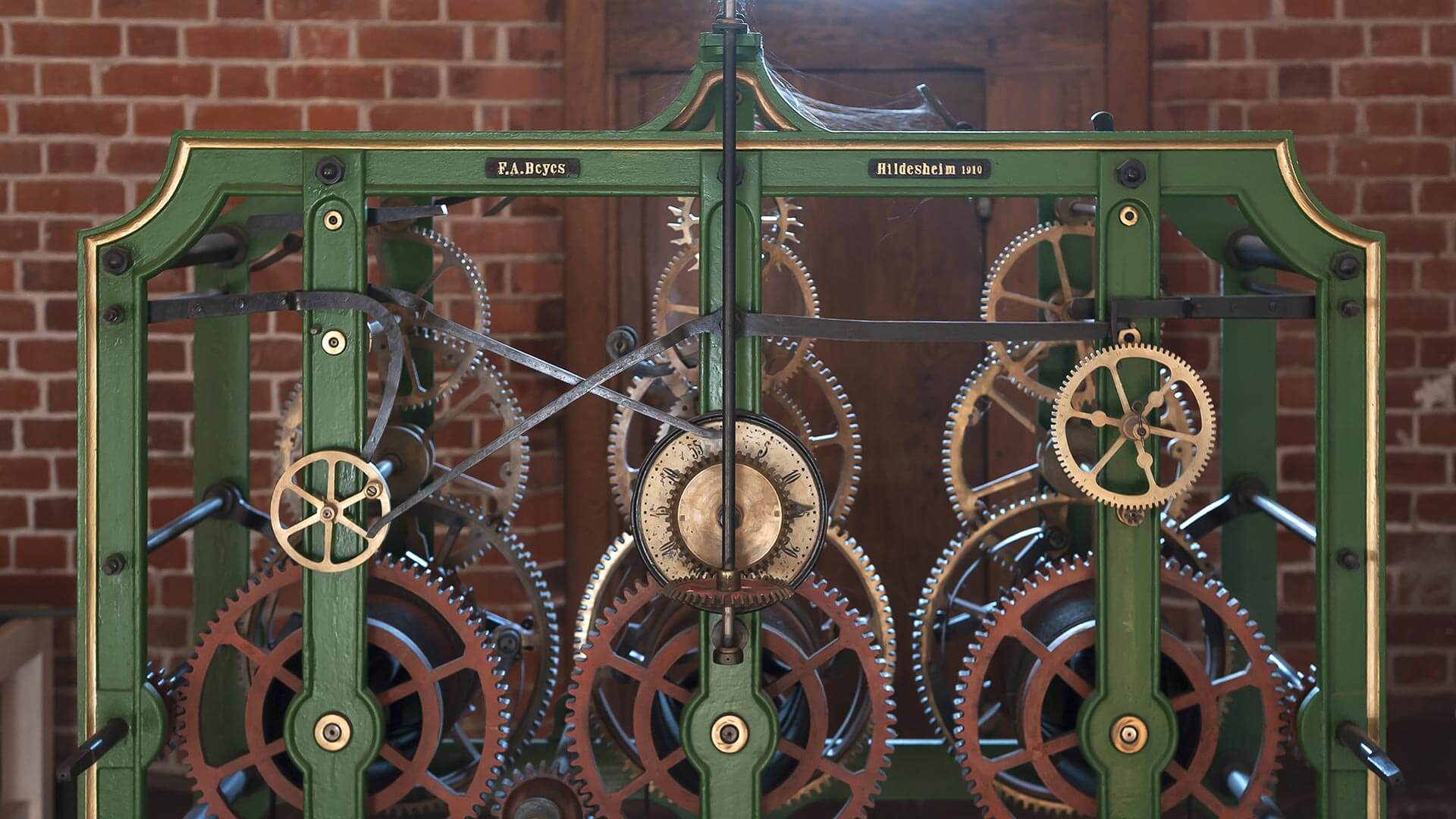 Altes Uhrwerk der Kirchturmuhr (1910 bis 1978) in der St. Michaeliskirche, Lüneburg, Niedersachsen, Deutschland (© Helmut Meyer zur Capellen/imageBROKER/Shutterstock)