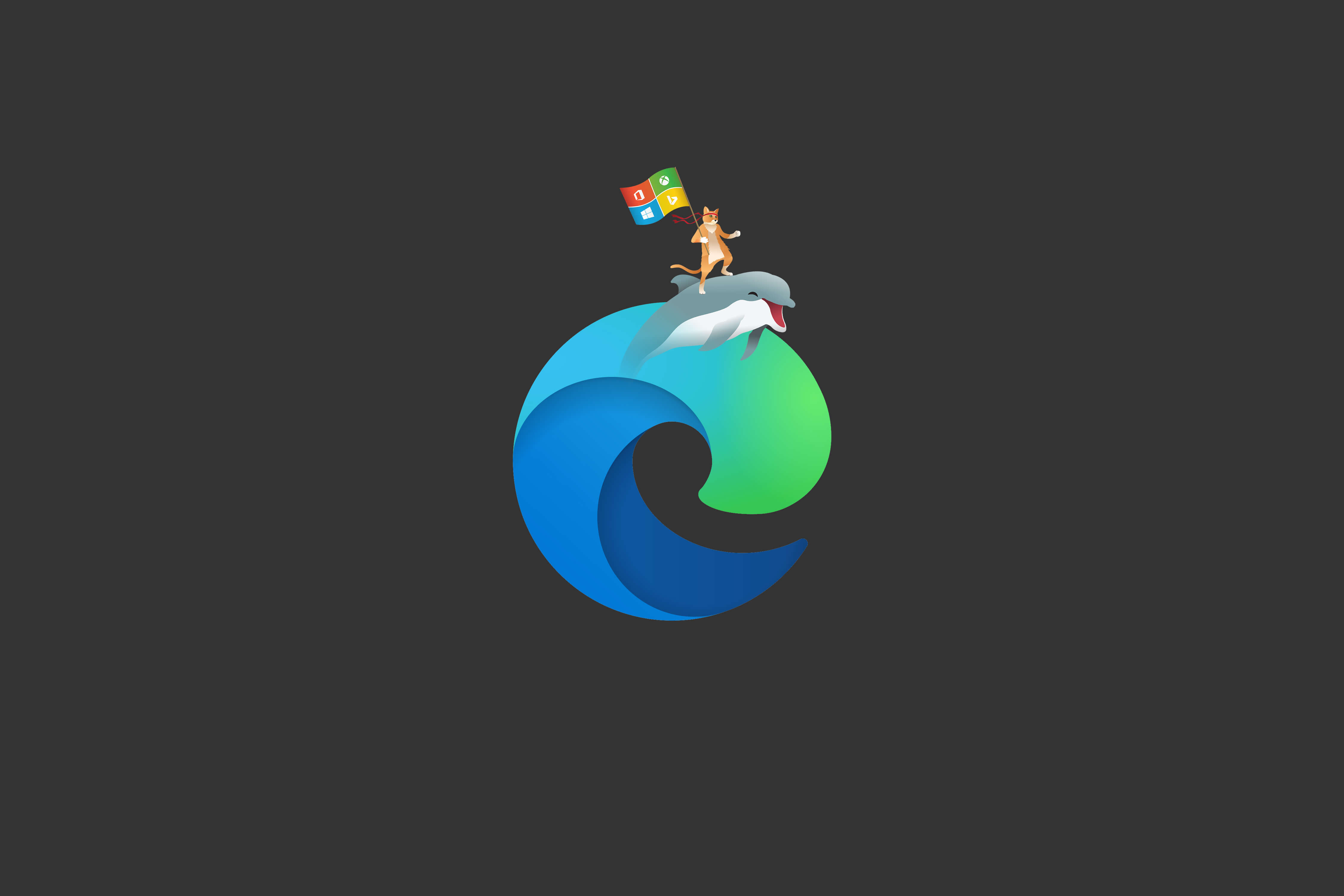 Ninja Cat surfs the web using the Chromium based Microsoft Edge