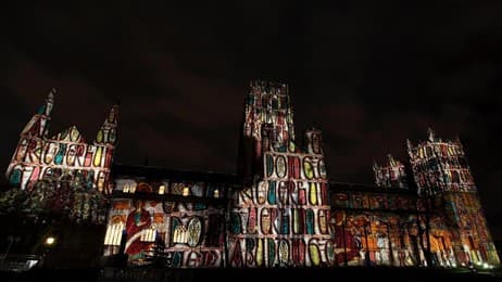 The 'Crown of Light' installation is projected onto Durham Cathedral during the 2013 Lumiere Durham festival in England (© Stuart Forster/Alamy)