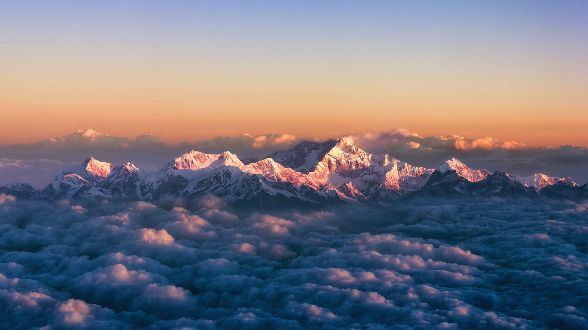 Kanchenjunga, on the India-Nepal border, among a sea of clouds at sunrise (© Alexander W Helin/Getty Images)