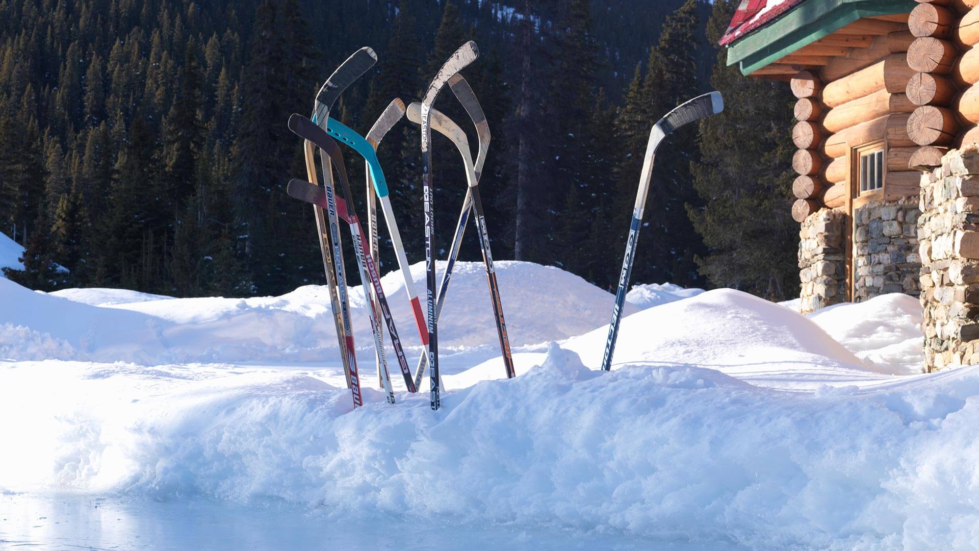 Ice hockey sticks in snow, Banff, Alta. (© Ascent/PKS Media Inc./Getty Images)