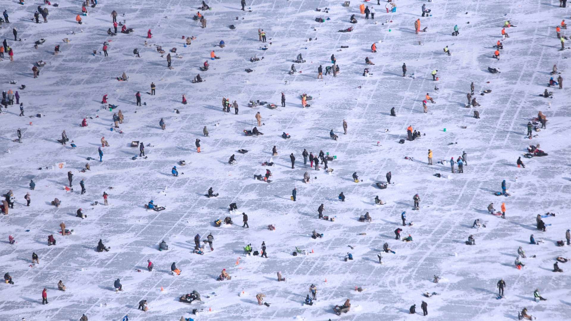 People ice fishing on Gull Lake in Brainerd, Minnesota (© Robert Benson/Cavan)