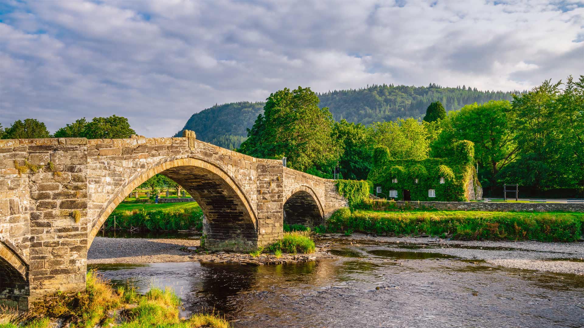 Die Steinbogenbrücke Pont Fawr in Llanrwst, Wales, Vereinigtes Königreich (© Pajor Pawel/Shutterstock)