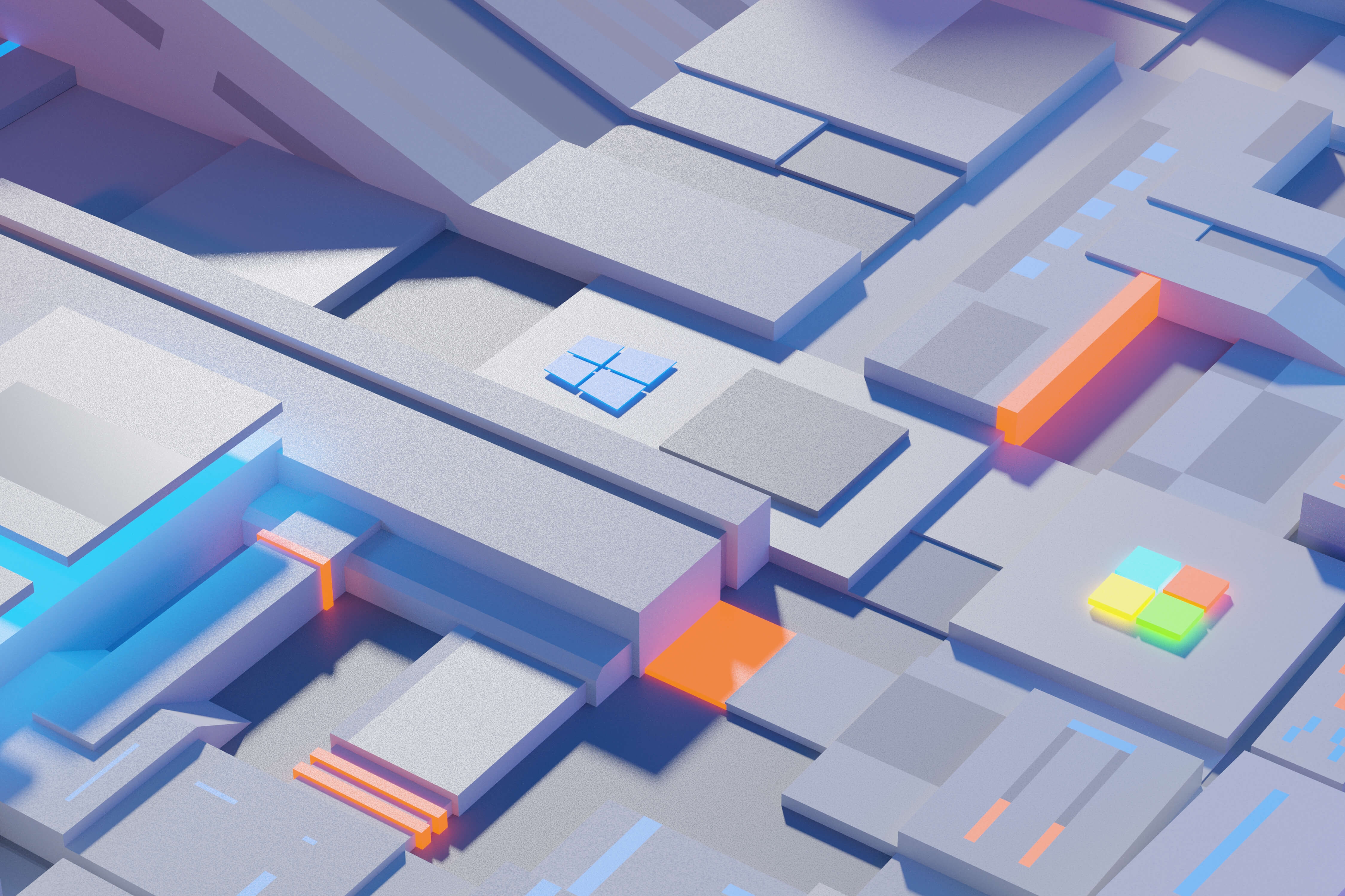 A wallpaper inspired by Microsoft's product videos with its own aesthetic and style showing off the illuminated Microsoft and Windows logos