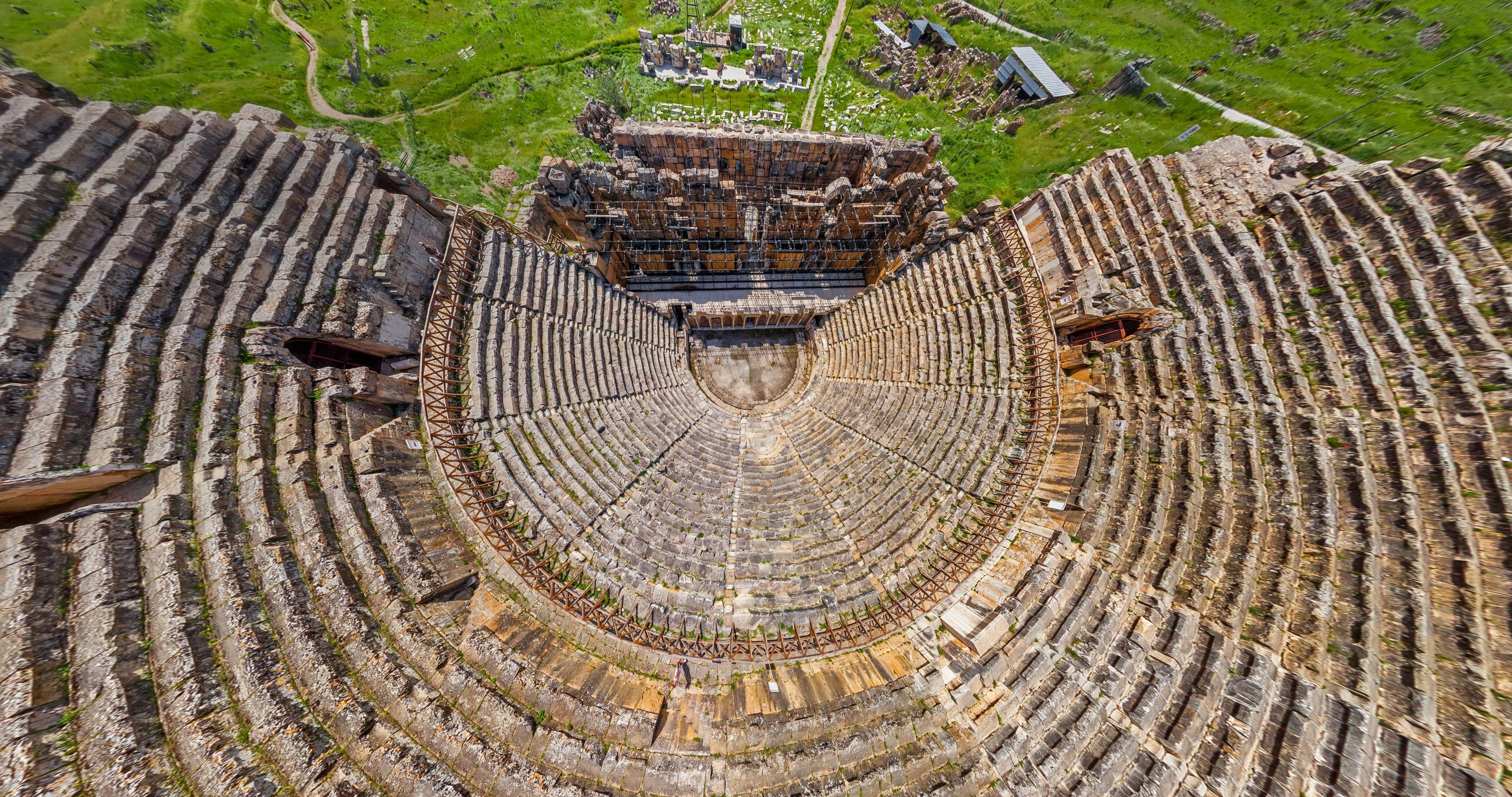 Aerial view of the theater at the ancient city of Hierapolis, adjacent to Pamukkale, Turkey (© Amazing Aerial Agency/Offset by Shutterstock)