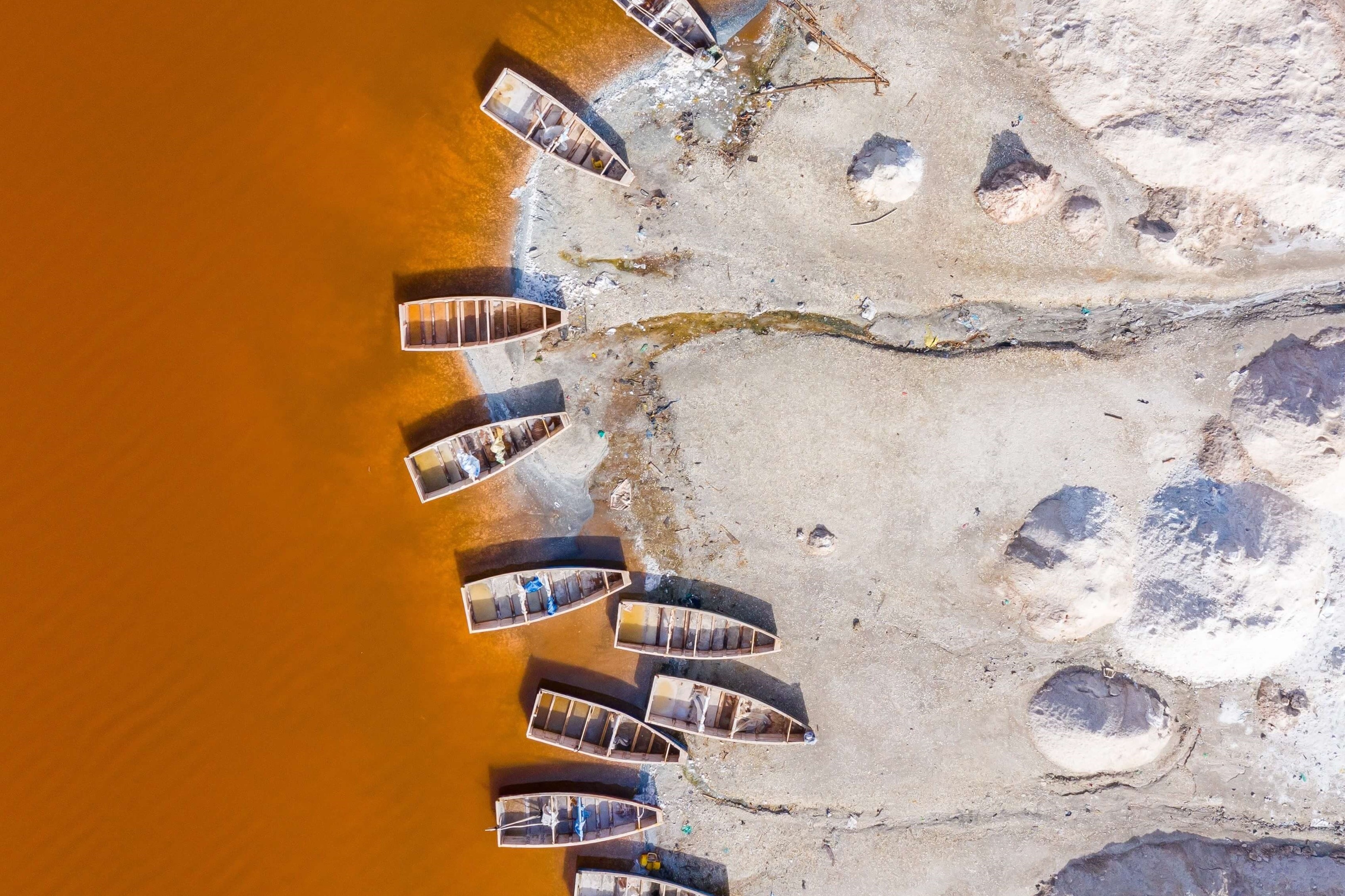 An aerial photo of boats on a beach in Senegal that works well on foldable and dual screen devices