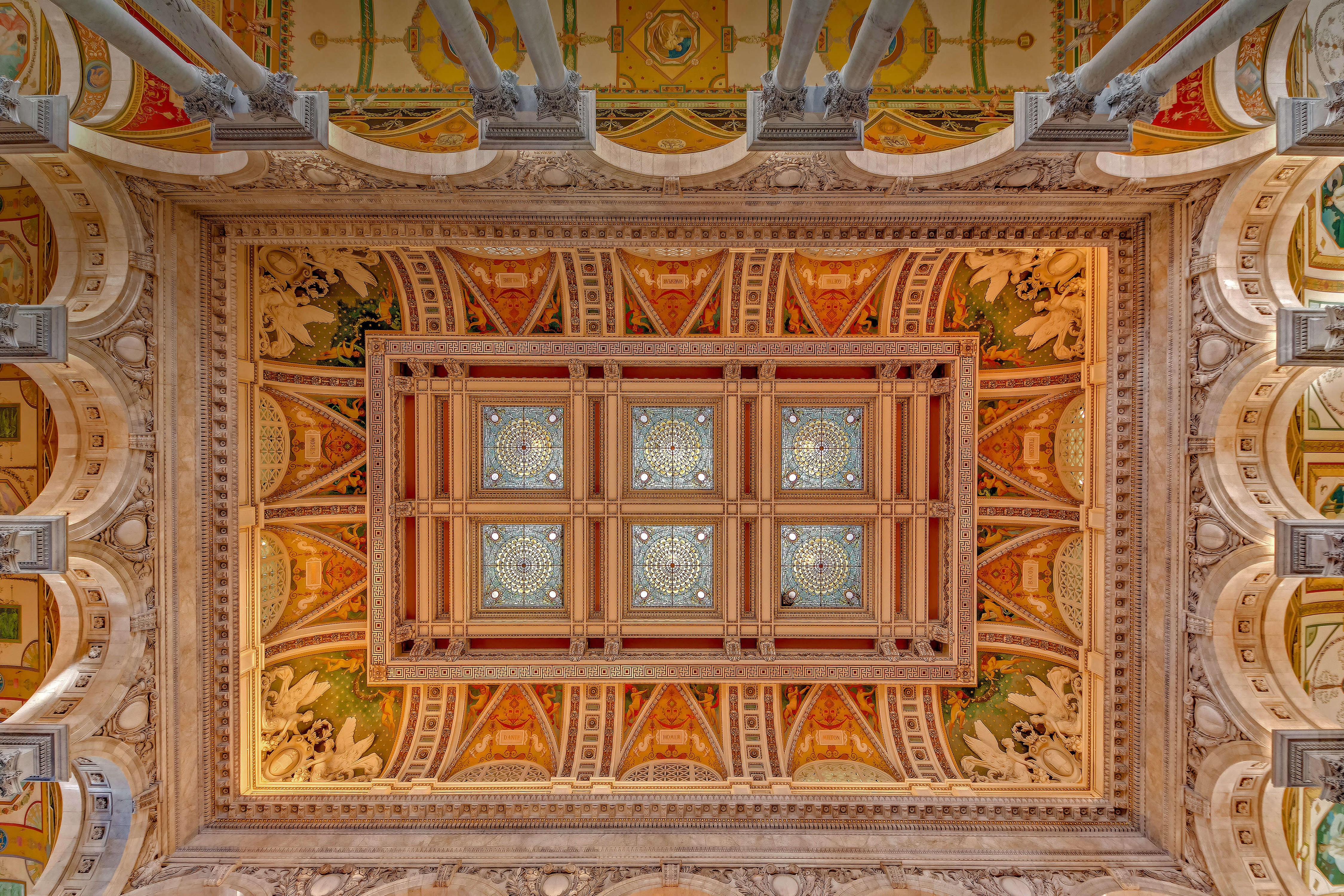 Ceiling and cove of the Great Hall at the Library of Congress in Washington, DC (© Susan Candelario/Alamy)