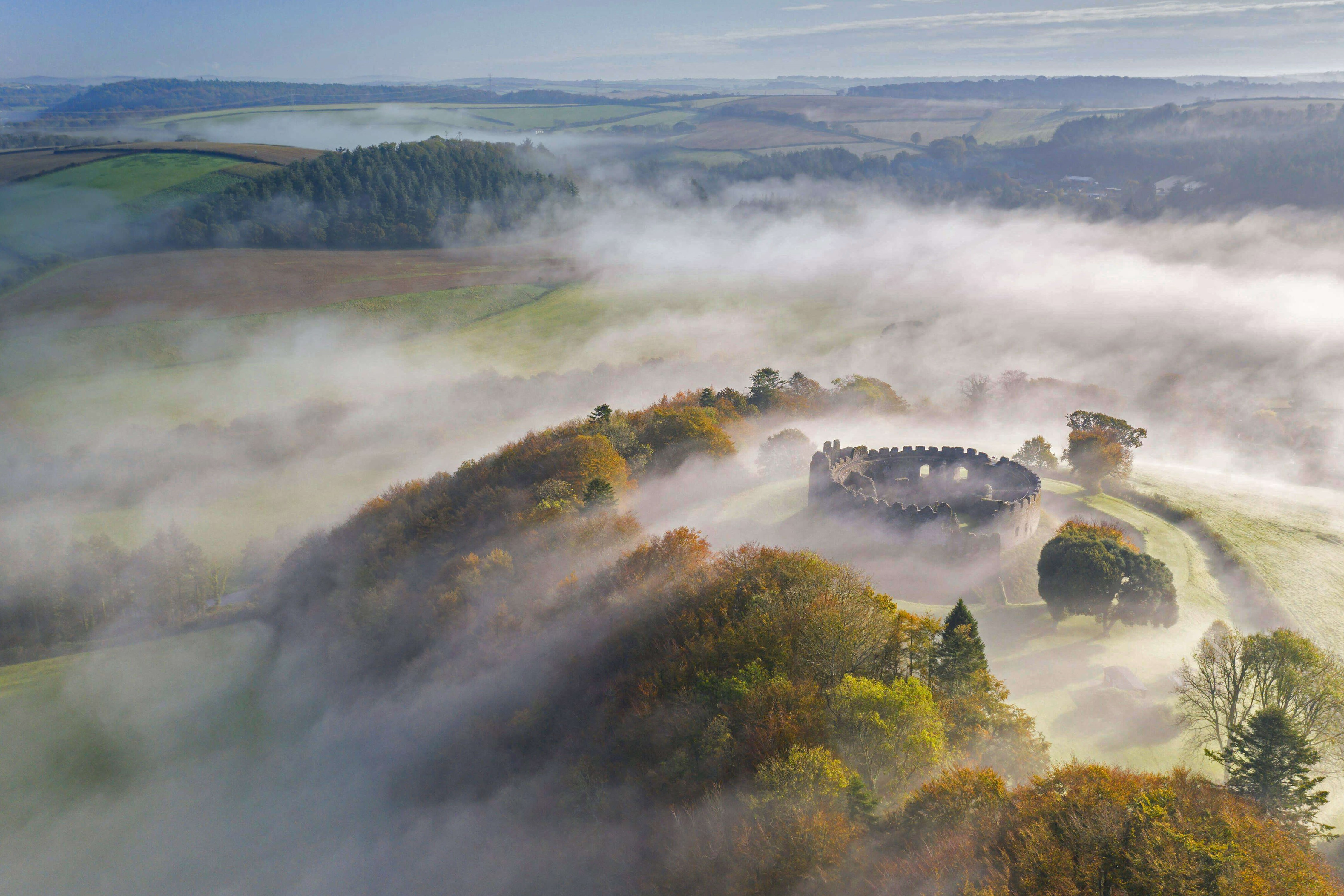 Autumn mist above Restormel Castle in Cornwall, England (© Robert Harding/Alamy)