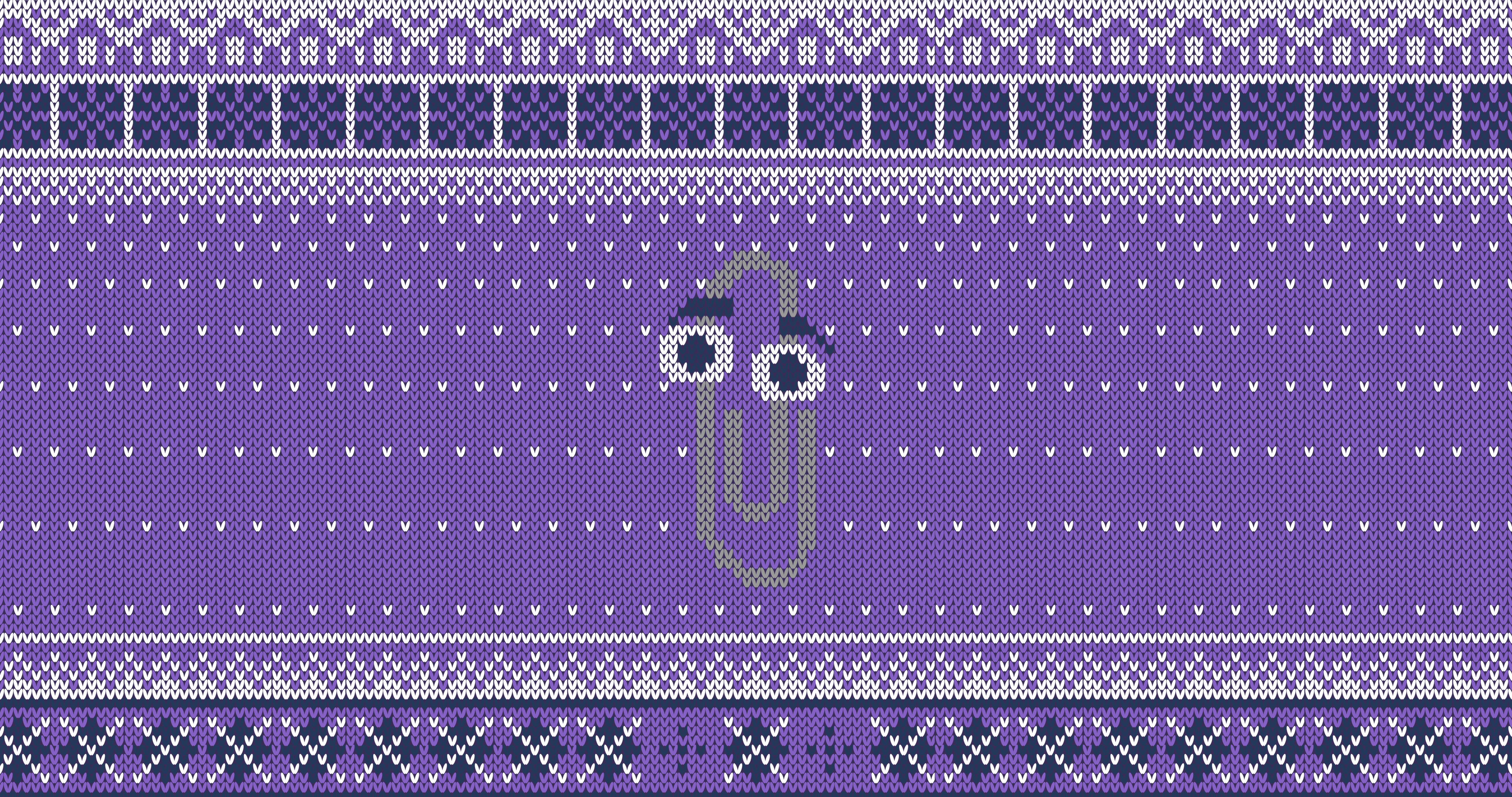 A festive version of Clippy for the winter season based off a mobile wallpaper Microsoft shared