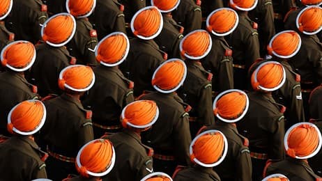 Indian army soldiers march during a dress rehearsal for the Republic Day parade (© Adnan Abidi/Reuters)
