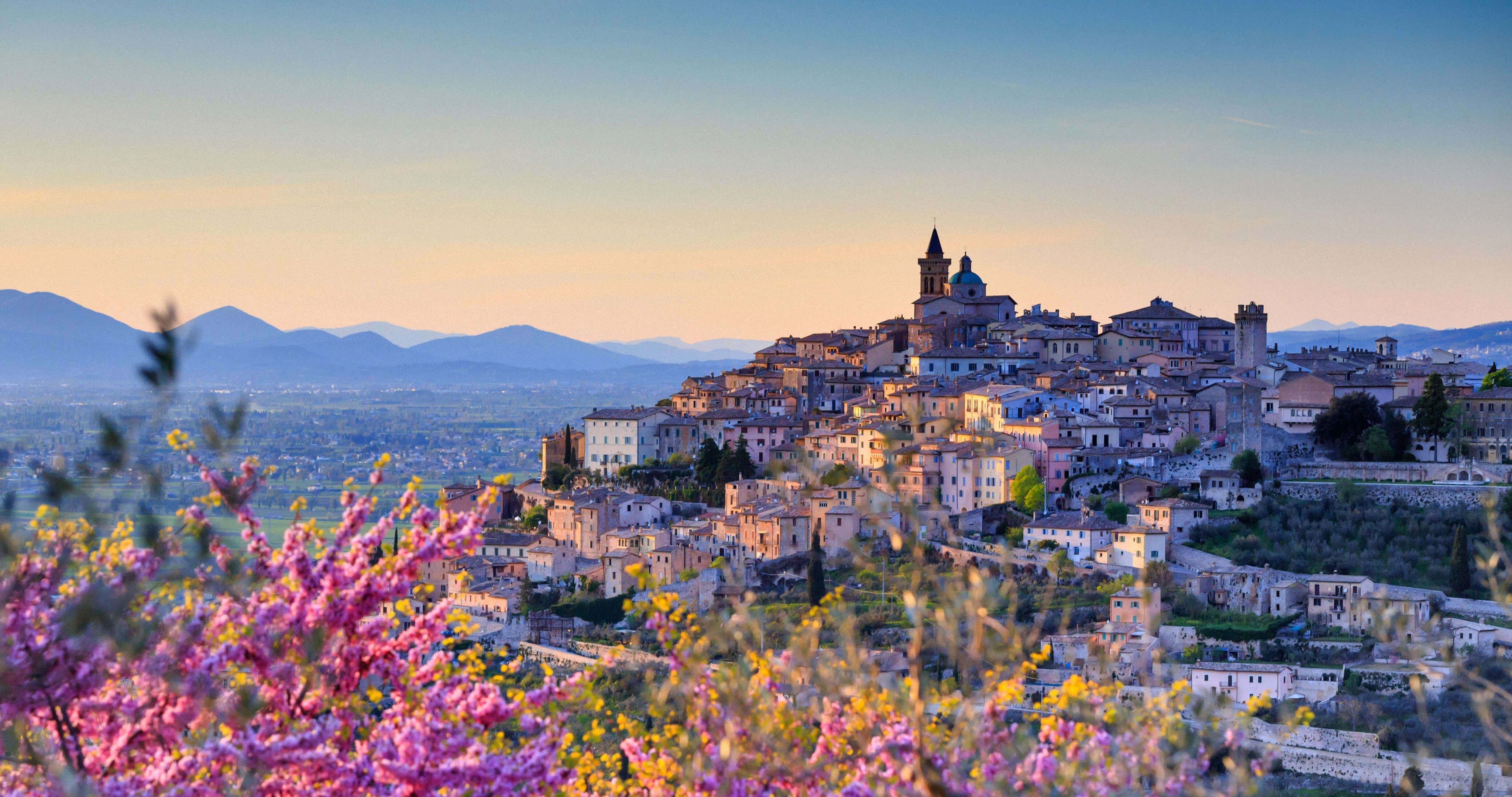 Almond blossoms overlooking Trevi, Perugia district, Umbria, Italy (© Maurizio Rellini/eStock Photo)