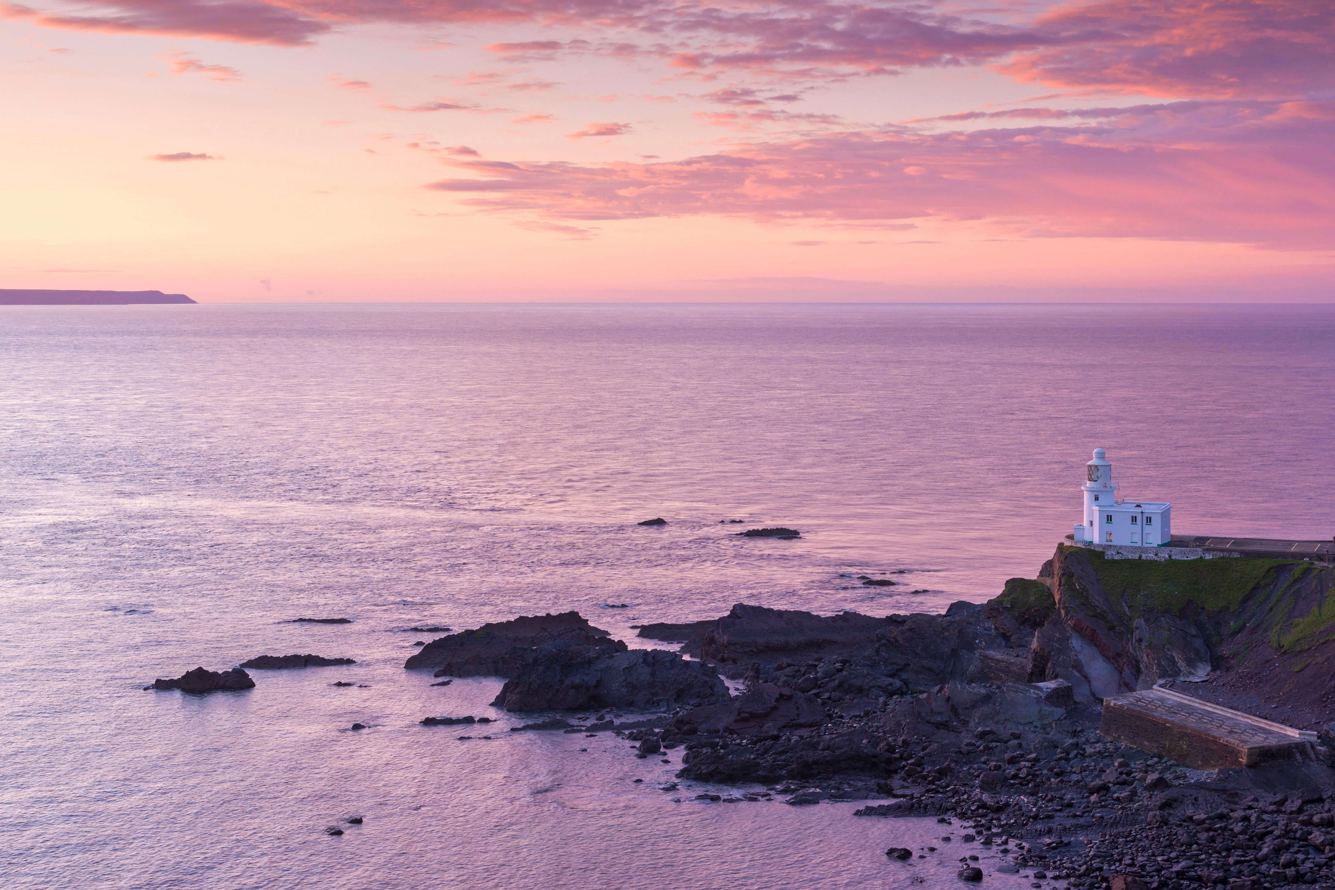 Hartland Point Lighthouse and Lundy Island beneath a colourful sunset, North Devon (© Adam Burton/Alamy Stock Photo)