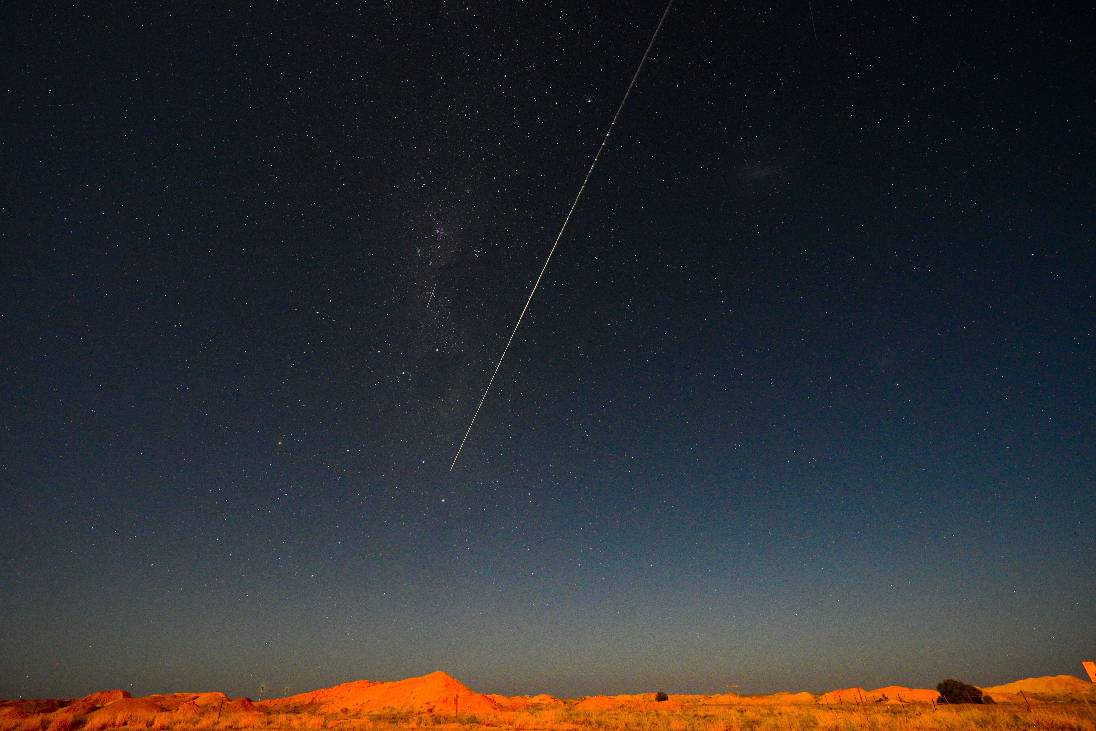 「はやぶさ 2 から切り離されたカプセル落下の瞬間」オーストラリア, ウーメラ (© MORGAN SETTE/Getty Images)