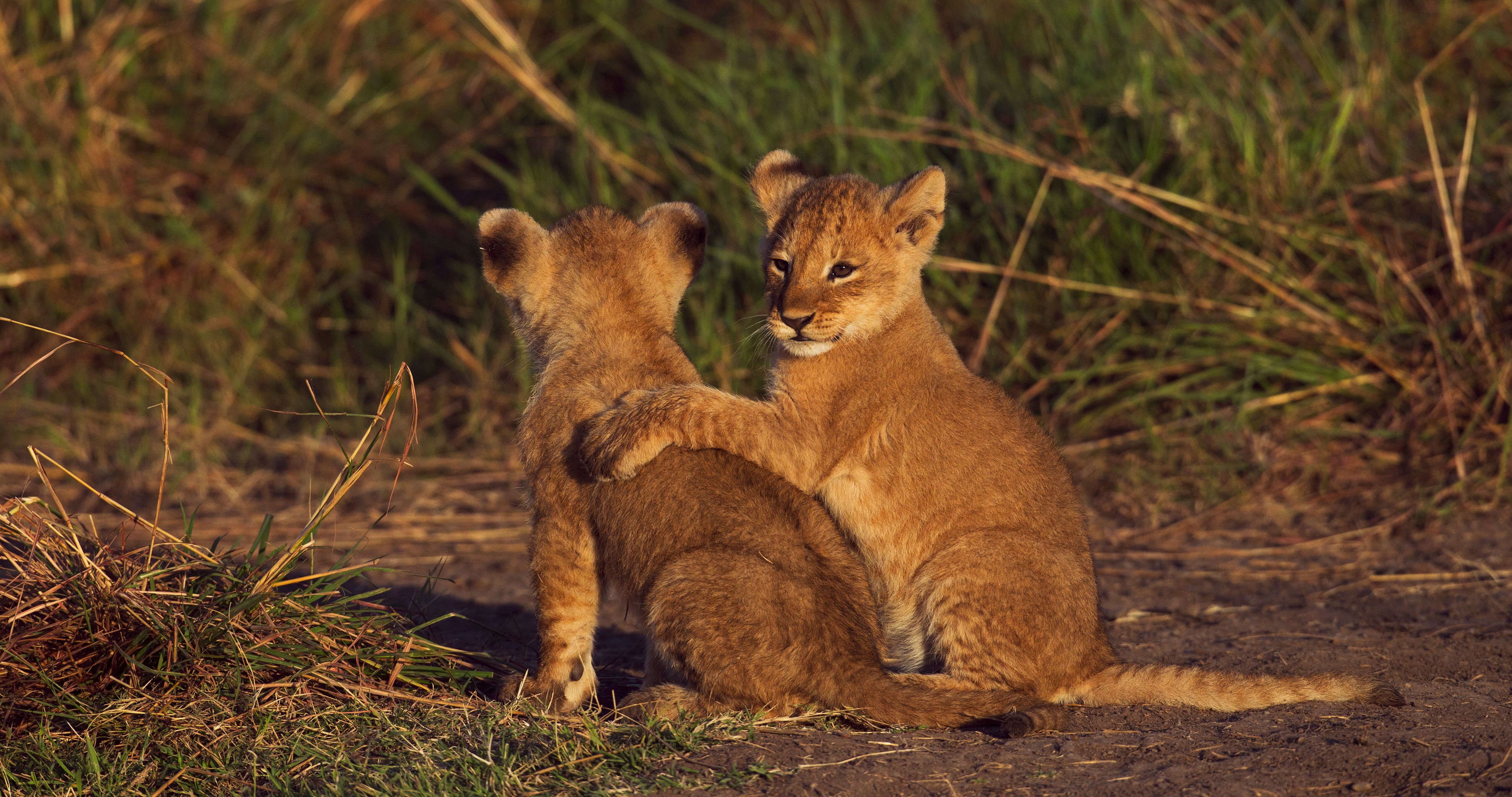 Deux lionceaux dans la réserve nationale du Masai Mara au Kenya (© Anup Shah/Minden)