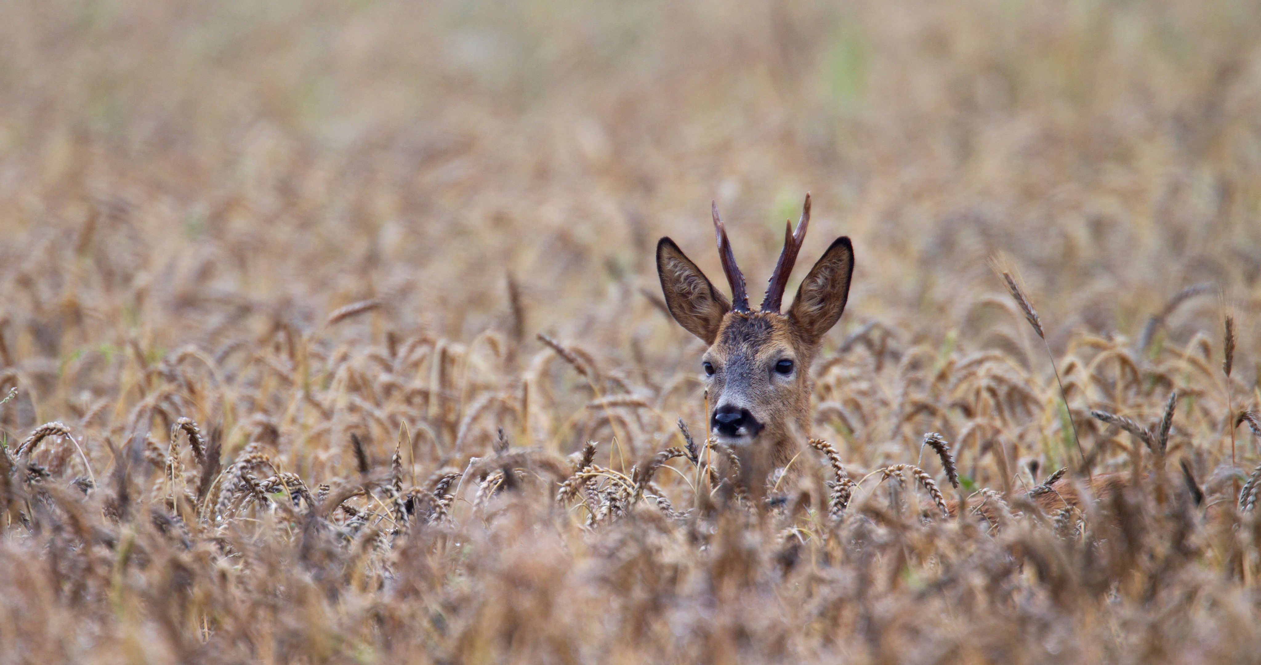 Rehbock in einem Getreidefeld zwischen den Dörfern Mehlbek und Wacken, Schleswig-Holstein (© Helge Schulz/Minden Pictures)