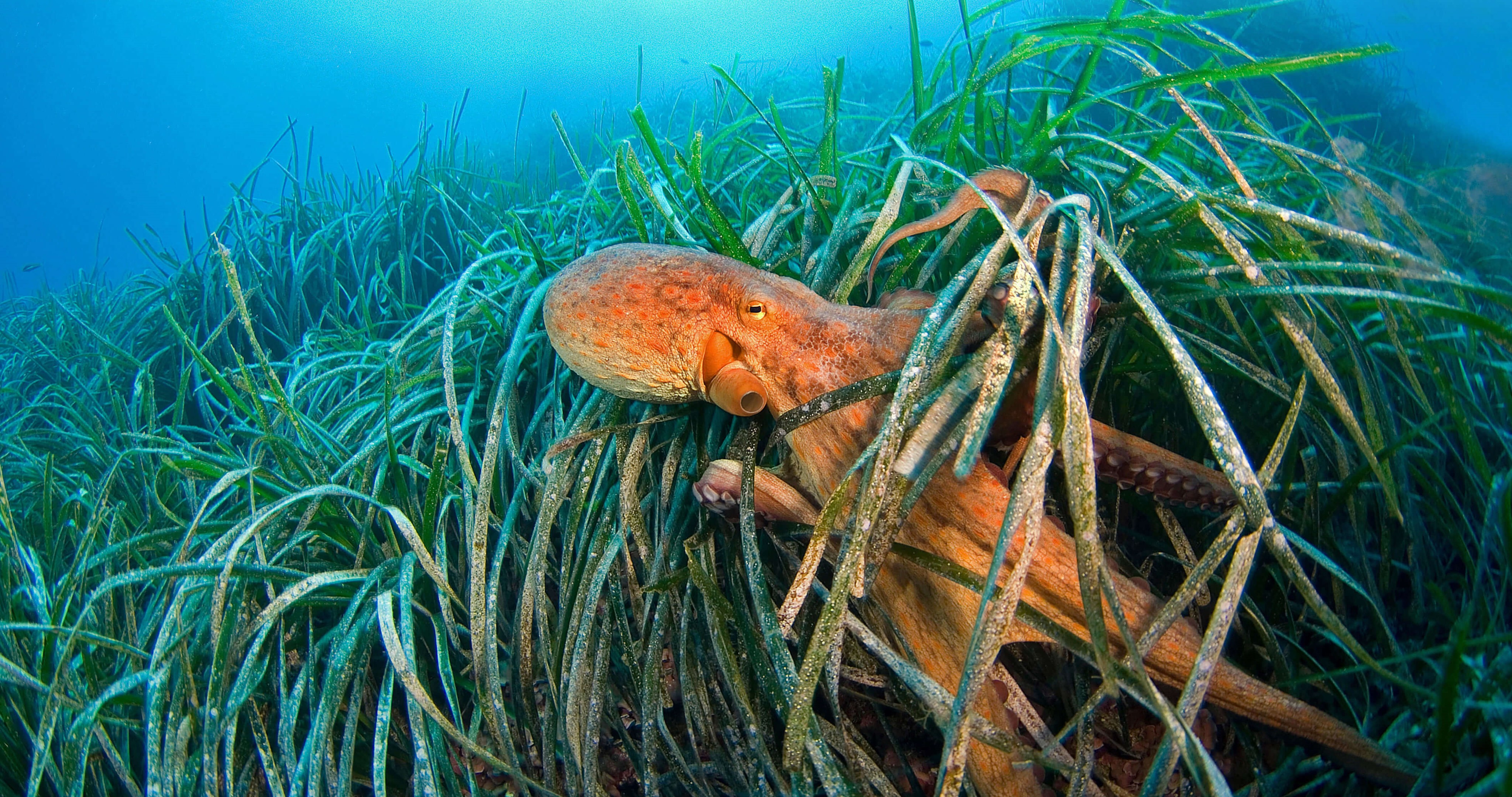 Common octopus in sea grass off the coast of France in the Gulf of Lion in the Mediterranean Sea (© BIOSPHOTO/Alamy)